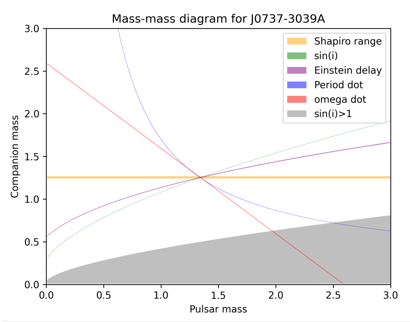 The parameters that were calculated are known as Post Keplerian (PK) parameters and their calculation in different theories of gravity is important as they can be used to directly test these theories. The parameters are functions of the two masses of the binary system so when plotted (see figure to the left) given observational values of the PK parameters they create curves in the space of the two masses. This provides excellent test of the theories as these curves must cross at a single point, at the actual values of the two masses of the system.